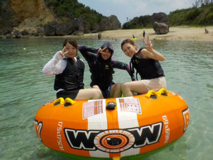 バナナボートに乗って浜比嘉島周遊クルーズ!